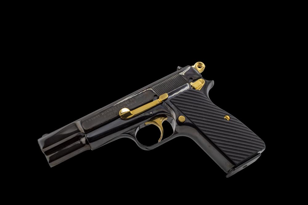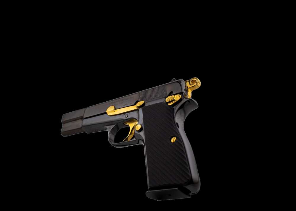 FN Browning Hi-Power-Deep Blued Finish-24K Gold Controls-Custom Luxury-C&R